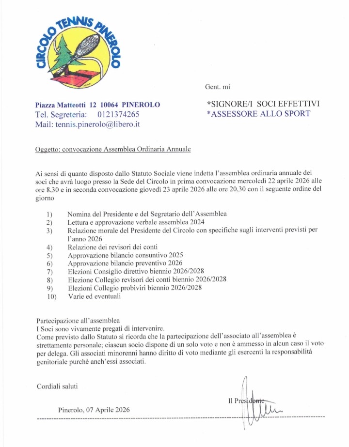 - 07 Apr | 23 Aprile 2026 - CONVOCAZIONE ASSEMBLEA ORDINARIA ANNUALE con ELEZIONE CONSIGLIO DIRETTIVO BIENNIO 2026/2028